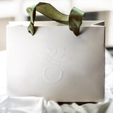 Unsere elegante Geschenktüte in stilvollem Creme, akzentuiert mit einem edlen grünen Band, verleiht Ihrem Schmuckgeschenk den letzten Schliff und unterstreicht die besondere Qualität von AMOONIC. Das Auspacken wird zu einem unvergesslichen Erlebnis.